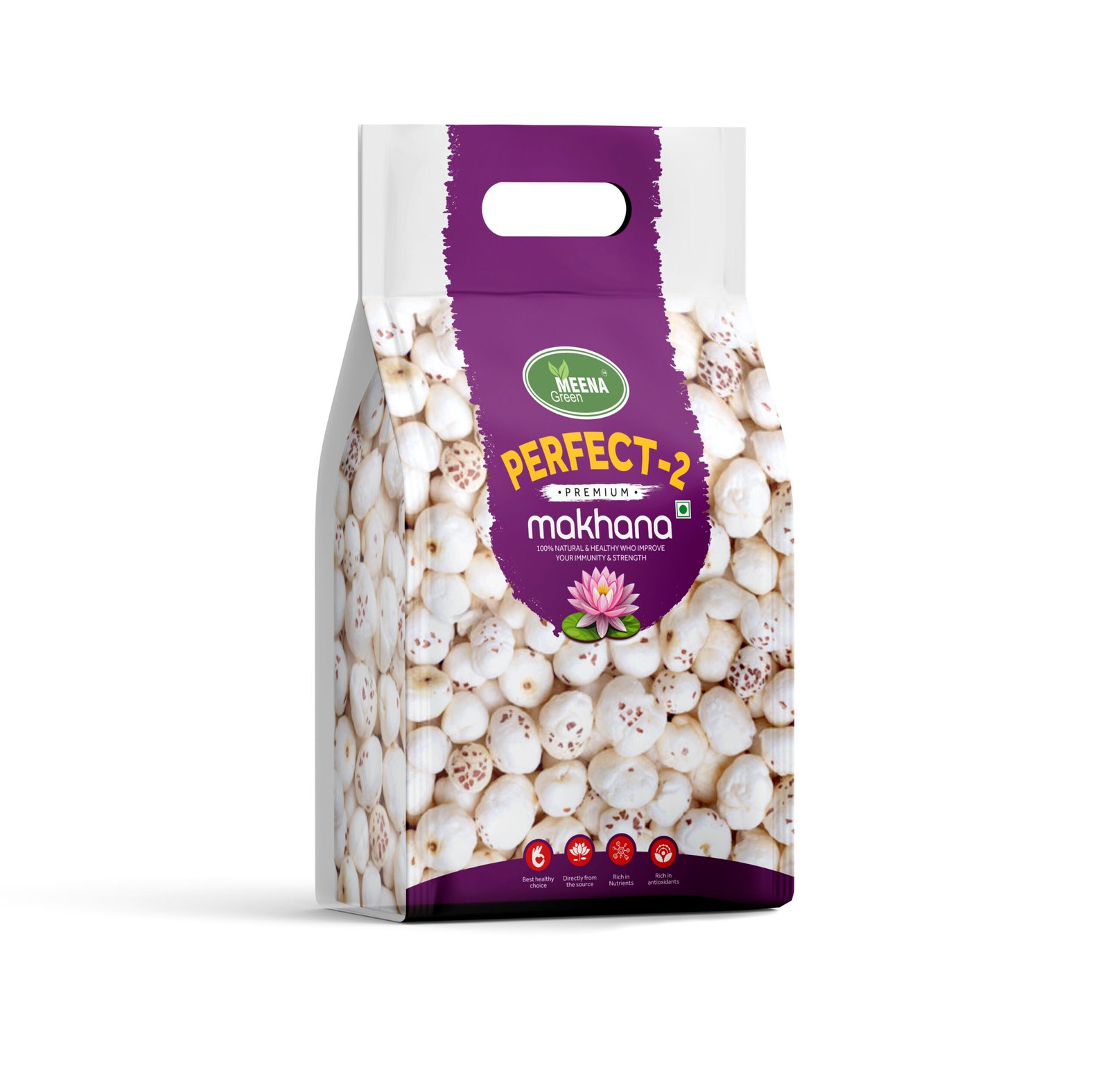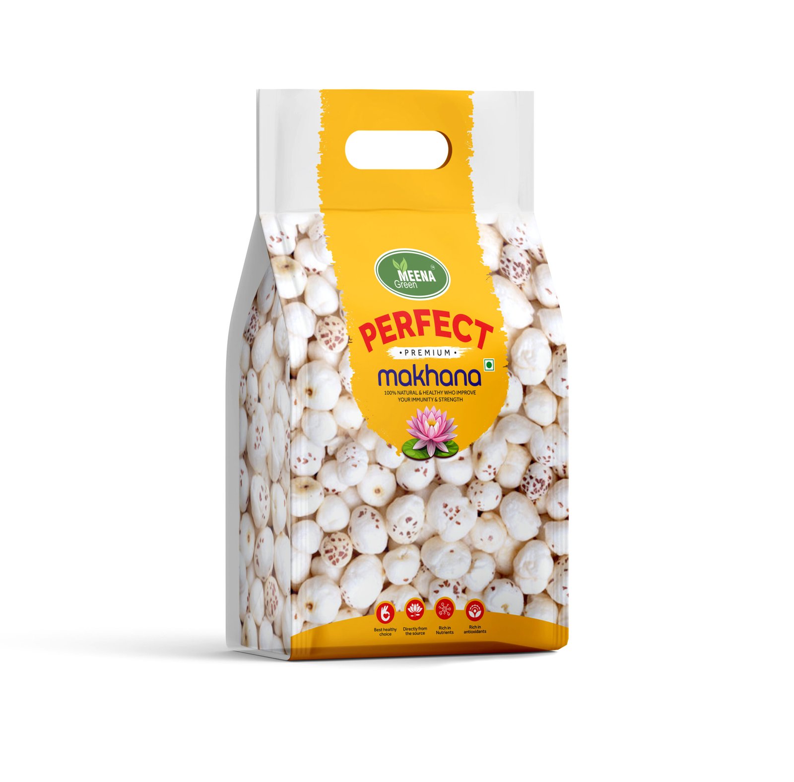 Experience purity, taste, and nutrition in every bite with MeenaGreen Perfect Premium Makhana. Sourced from the finest farms and processed with the highest hygiene standards, our makhana is carefully hand-picked to ensure uniform size, superior crunch, and premium quality in each pack.