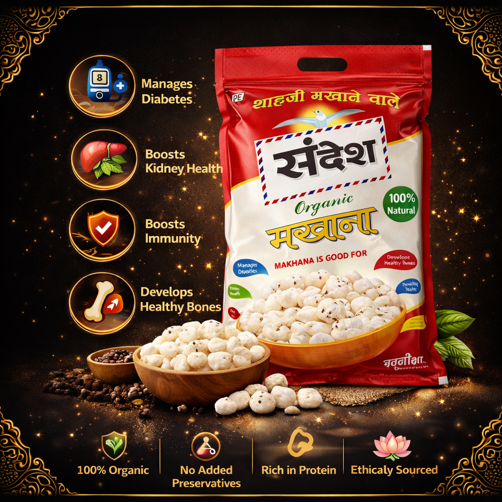 Makhana is known as a superfood and is widely used for healthy snacking, fasting, and traditional cooking. Sandesh Makhana is rich in protein, low in fat, and ideal for people looking to include makhana in their daily diet.